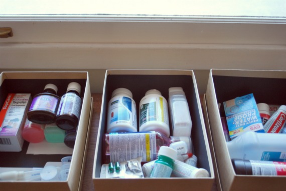 Photo boxes…what a brilliant idea! I already have our meds sorted the same way you do (adults/kids/first aid) but they’re jumbled into baskets that don’t really fit the shelf. Thank you!