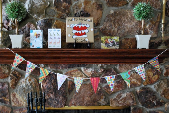 We didn’t have a theme. No Angry Birds/Transformers/Mario Brothers/Star Wars. I used the same party flags I made for his birthday party last year, and I’ll use them again for the next party, too.