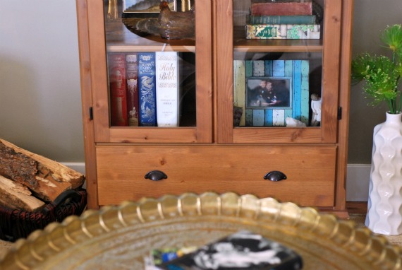 I had plans to sell this other china cabinet on Craigslist, too, but once the mid century cabinet left, I knew I had to put something in its place, at least temporarily. It will be a while before we can afford to replace it, but right now I am debating between an upright piano (I played for 11 years) or a low sitting set of bookshelves with an assortment of family pictures on top. Similar to this, but not quite so cluttered.