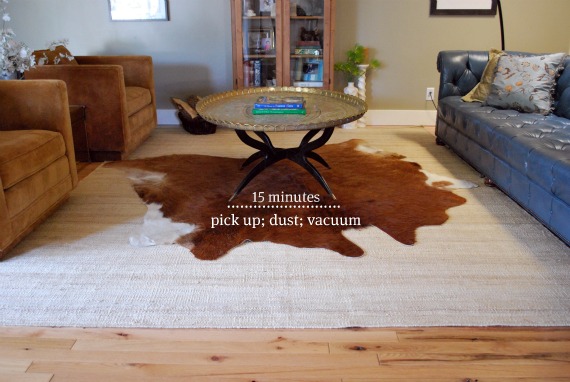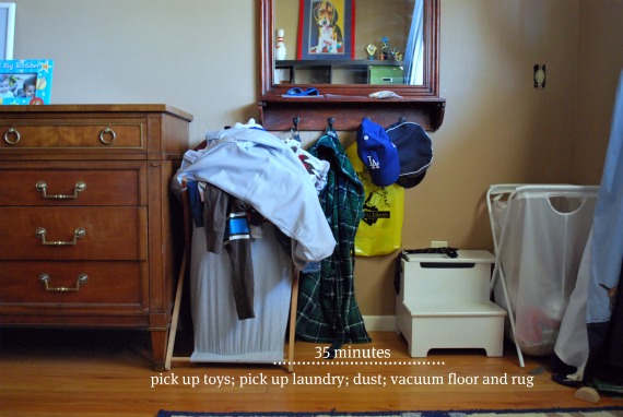 I’ve been thinking more and more about ditching our cleaning service. She only comes once every 2 weeks and for $75 gets the house clean, and it lasts for about 2 days. We’ve had one for so long (ever since Art and I got married and were working too much to clean) that I’ve gotten used to having the whole house clean at one time. I’m starting to realize though that it doesn’t all have to be done at once, in parts like you did here, because like you said, it doesn’t all stay clean for long anyhow. With another baby coming there are so many other things we could save that money for, like college for said baby #3. Good post Jules