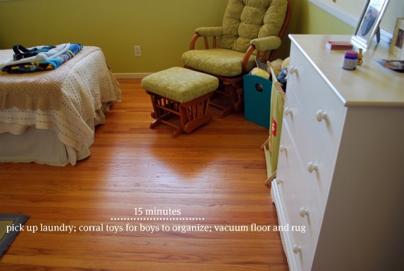 I think that using the FlyLady method and just working on something totally focused for 15 minutes at a time can make a huge impact on a space, especially when it comes to declutter, tidying up and cleaning in general. And it keeps it from getting so monotonous.