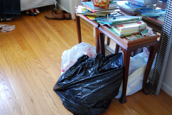 My 14yo daughter has been inspired, I think, by my efforts to get rid of things. She was home from school the other day (a threatened school shooting that turned out to be a hoax!) and went through her closet and all her drawers. She got rid of 6 bags of clothes! So proud – and so happy she’s gotten to the point where she can and will do this for herself.