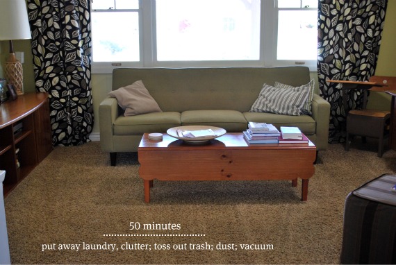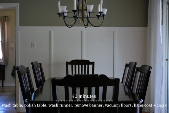 It only took you four hours and ten minutes to clean the whole house. That’s fabulous! You are inspiring me: I wonder how long it would take for me to get the house presentable, too?
