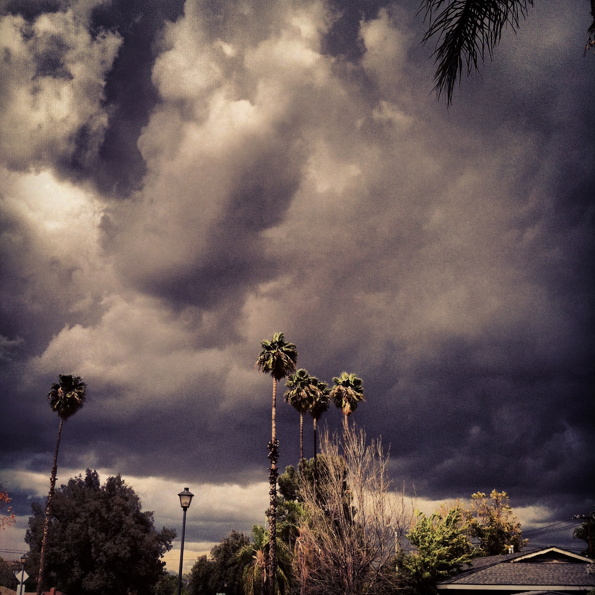 After I got off the phone I went to the store to buy some medicine and cookies. It wasn’t as cold and rainy as the day before, but by the time I got home the sky hung black in the north and the wind took advantage of the forgiving trunks of the palm trees. It was both sinister and beautiful. I stayed outside to watch the clouds race across the sky until the bags from Target became uncomfortable to hold.