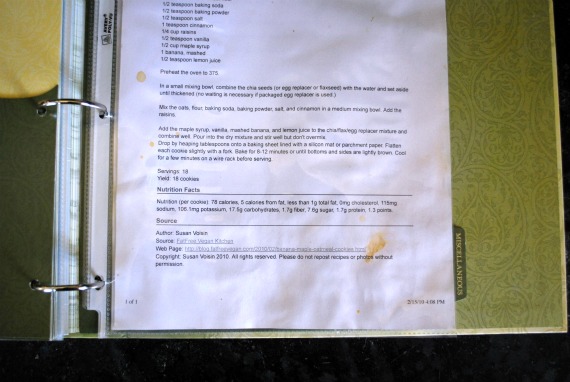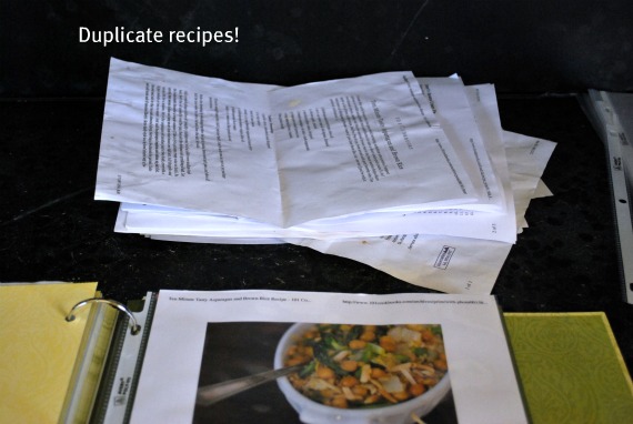 So many of my online recipes were duplicates! And a few of them–the ones I’ve made over and over again–I remember printing out multiple times. My “system” was so unorganized, so nonexistent, that it was easier for me to go to the computer and print out another copy than rifle through a stack of stained, crumpled paper spread across two cabinets for a recipe I wasn’t sure I had.