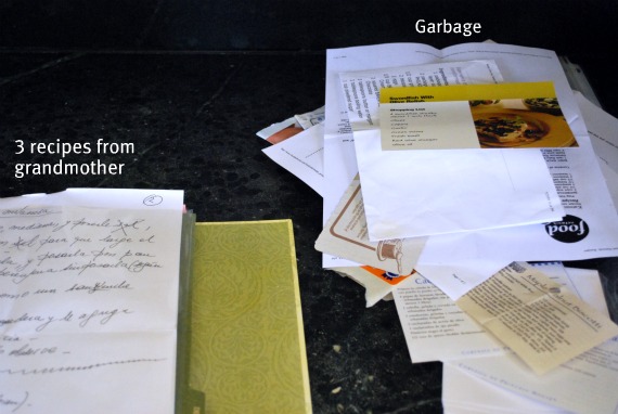 I love collecting recipes and very rarely follow them. I could probably chuck all the magazine clipping and internet prints I have shoved into folders, organized by season, and not even notice. This week I let go of emotional junk (not linking here as my recipe pile, jewelry pile, ect. remain) but I love this project and look forward to what everyone is up to.
