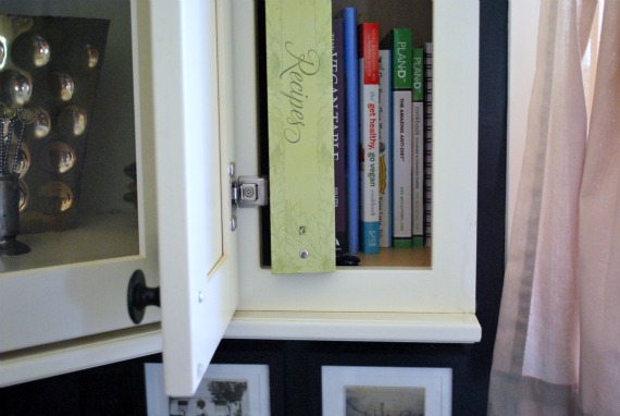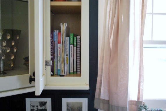 I have always wondered what the point is of small thin cupboards. Every kitchen that I have ever had has had one of them and they don’t fit anything. I think your idea of putting small cookbooks in them is the best thing I have seen.