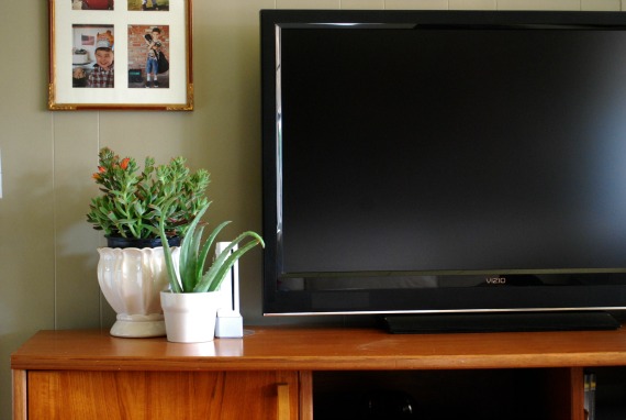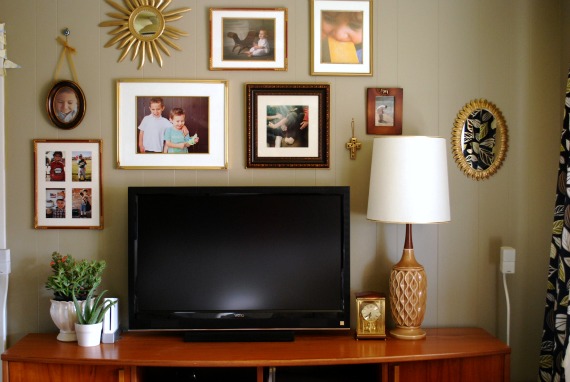 The wall looks fantastic! Such happy little distractions surrounding the TV. I can’t say it enough; it looks great. I love it. Love. Have a good day!