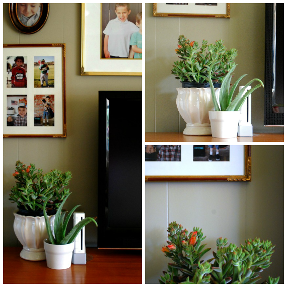 It looks beautiful–warm and very personal. Your succulents are so pretty– I wish I could find some house plants that could survive our household. Between the cat’s attention and my neglect, they don’t fare well.