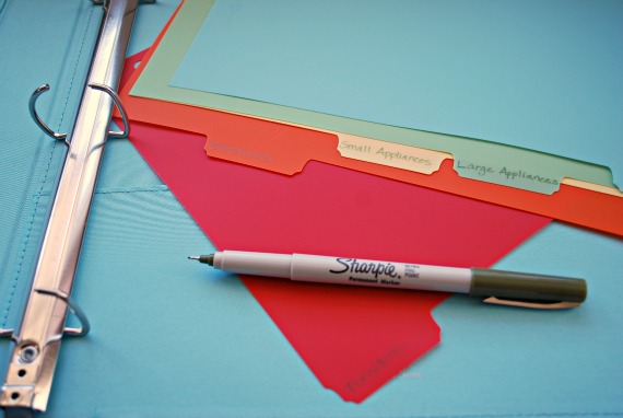 I might have to upsize the binder. It depends on how many more manuals I find. It’s not a problem, since I will need the binders for the home and family sections, too. I divided them according to type: Large Appliance, Small Appliance, Electronics, Furniture.