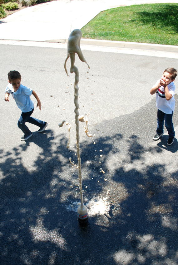 Those pictures are phenomenal! You not only captured the stream of cola. But also the joy and wonder on the boys faces – i can hear the shreiking + laughter. I told the girls I wanted to do thjs and when My 7yo saw the pics, she said Oh we did that at the convention!!! It’s. So cool!! The convention was Touch Tomorrow held at WPI by NASA and hosted the national robotics comp. And a whole lot of fun, hands on science activities for the public. So this activity is NASA approved :)
