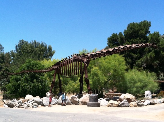 The grounds are equally interesting. There is a biblical garden, and from the looks of it the emphasis is post brimstone. The nursery on the grounds has one of the largest collections of cacti and succulents I have seen in a while. Once again, the prices are excellent. There is also a dinosaur hike on Saturdays where you can tour the large metal skeletons of dinosaurs tucked around the base of the Jurupa mountains. We went during the week, but the boys had a great time trying to spot them in the distance. As a consolation, the staff let them feed the turtles and Koi in the ponds.