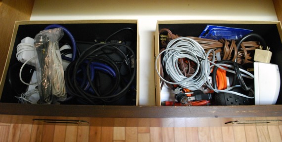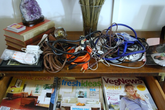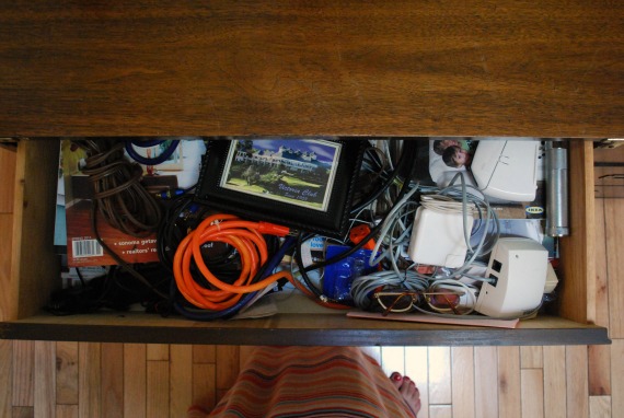 My plan–before I forgot all about it on Monday, Tuesday, and Wednesday–was to clean out the drawer where we store phantom audio video equipment. Cords, chargers, outlet strips, and dozens of magazines I haven’t read in years. And glasses and medical equipment, too.