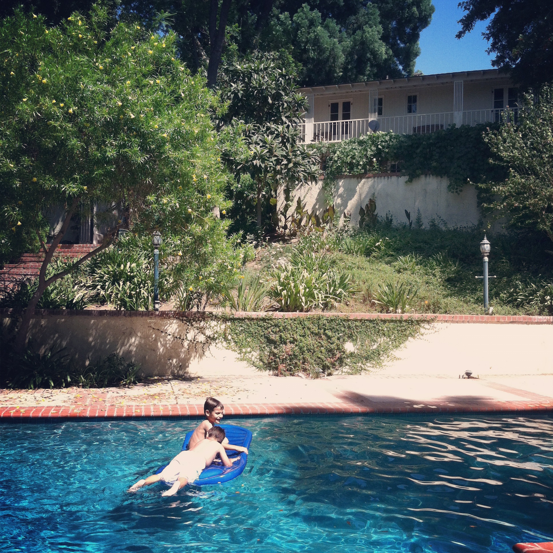 I’m on my way to Andrea’s house with the boys. We’re going to let the kids swim while we work on The Craft Cabinet. We sold out in just a couple of days, which both surprised and pleased me. If you would like to be on the wait-list, let me know. You know how it is–people cancel at the last minute all the time for this sort of thing. We have lots of work to do, but it will be fun. I took that picture of the boys yesterday at my friend Helena’s historic and gorgeous childhood home. It’s one of the last times the boys will swim there, since the house recently sold. I’m pretty down about it, but it’s the best move for Helena.