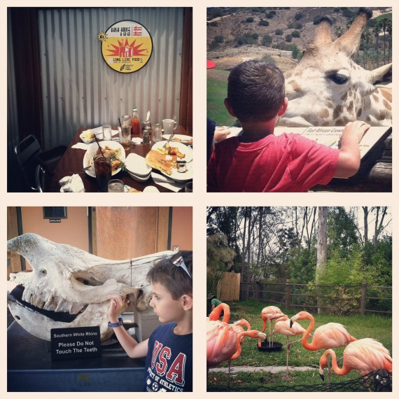 Since I’ve been gone I fed a giraffe an acacia leaf while I pet her nose. I wore my hair in braids nearly every day. I fell in love with the creamsicle orange of flamingos. I saw The Horse and Titanic exhibits at the San Diego Natural History Museum. I read most of Blind Your Ponies, a book so deep in my Unread Library that I never even bothered putting it on the list. I visited almost all the hot spots recommended in my last post, even waiting almost 2 hours for breakfast at Hash House a Go Go. I did it for the Mister, because I have yet to find a traditional breakfast food item I enjoy. Pancakes, waffles, bacon, sausage, scones, muffins, juice, toast, eggs in all forms, and anything ever served at an IHOP is wasted on me. Funny enough, breakfast is his favorite meal. He loves it.
