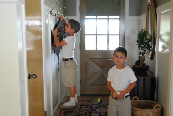I have to say, the mudroom-entrway worked out great! Getting the boys to school went without a hiccup, and when they came home they knew what to do…and they turned putting their shoes in the basket into a game of football and basketball. Life was grand, everything was in order, and I was pleased to come home from school without having to trip over shoes or search for lost backpacks. Then I opened their school folders and discovered Nicholas forgot his homework, Mikey didn’t take his makeup spelling test, and both boys didn’t give their teachers the notes I typed out the night before.