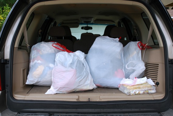 3) Reevaluate on a regular basis – toss in bag, toss in car, toss in donation box.