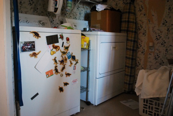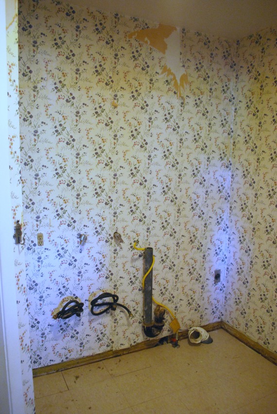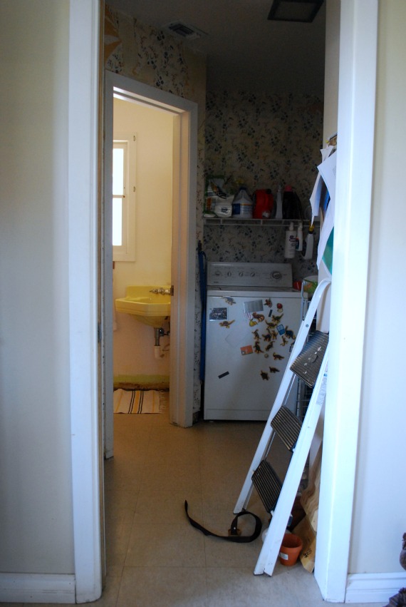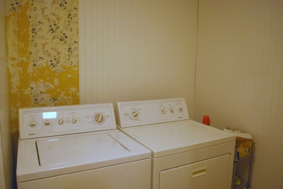 We were so over it that we let the laundry room go. We didn’t have the energy to tackle that wallpaper, or the money to replace the walls.