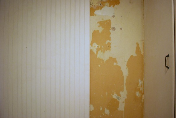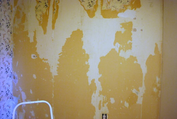It was everywhere. All over the kitchen, all over the laundry room. We started in the kitchen during the remodel. We tried natural recipes, gel removers (using� a tiger tooth both times), a steamer, and at least one other spray. It worked in some places, but in others the paper separated like two-ply toilet paper, leaving behind paper thin brown paper. We tried scraping it, but our walls are plaster; they started to crumble. We reached a breaking point when the we realized the time lost in patching cost more than the price of tearing it all down and replacing it with drywall. So, that’s what we did in the kitchen.