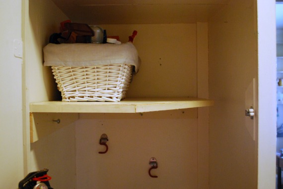 I made quick work of the rest of the closet, and by the time I was done everything was in place and stationary. I’ll repaint the interior and replace the shelf soon, but for now there is enough open space for me to easily take out and put back the vacuum for regular housekeeping.
