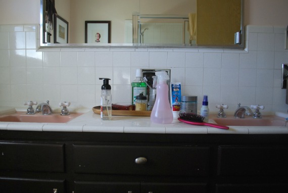 It’s good to know that I am not the only one annoyed by the neverending bathroom clutter. We have two bathrooms that the kids use, and despite daily reminders (begging, actually), they seem incapable of putting anything away. They brush their teeth before school in the downstairs powder room, so there’s a drawer with toothbrushes and toothpaste. But nothing goes back in the drawer unless I do it. And upstairs, I left it all out on a tray, but nobody can manage to put their dripping toothbrush back in the holder or the cap back on the toothpaste. Add ten million hair accessories (that invariably get stuck in a glop of toothpaste), and it’s a disaster. There are lots of drawers in the vanity, but out of sight, out of mind. At this point I think I’m resigned to cleaning out the drawers just so it’s easier for me to put things away, since I’m the only one who cares. I just hope that when they’re adults, they will prefer to live somewhat tidily and start putting things away themselves.