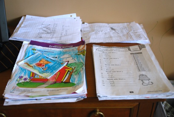 Oh good for you! I thought I was “supposed” to keep all of it and did for a couple of years before I started tossing stuff out. I keep papers they’ve written, some essays, maybe an early spelling test or two, but most everything else gets thrown away. If you don’t do that, the good stuff may as well be thrown out because it’s lost in the avalanche of math homework and grammar quizzes.