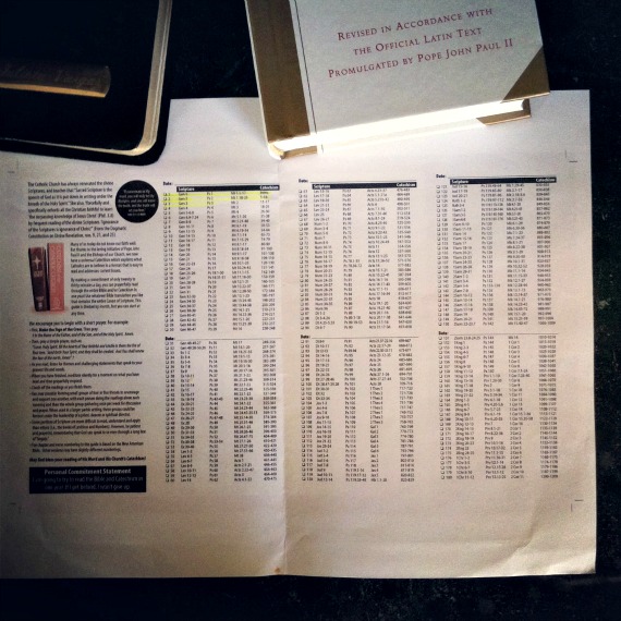 Reading the Bible and the CCC has been low pressure, too. The daily plan I’m on means I’m done with my readings in less than 20 minutes. I spend more than 20 minutes figuring out what I’m going to make for dinner! Bonus: this week in church we read a portion of the gospel of Matthew that I had already read during the week. It made me feel connected and involved.
