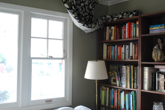 I’m particular about curtains. I like them thick and lined, not skimpy or wimpy. I also like them double hung with sheers to filter the light during the day. I want to be able to see out to the street but still protect our furniture and pictures from the glare of the setting sun. (Also, it’s blinding come sunset.) Unfortunately, our plaster walls can’t support the weight of what I like. Every few months the rods pull out from the walls, forcing us to take everything down, patch, and reinstall. There is a reason why we can’t use anchors, but for the life of me I can’t remember. I do know that behind the paneling in the family room is the brick and mortar of the exterior facade. Whatever the reason, no anchors.