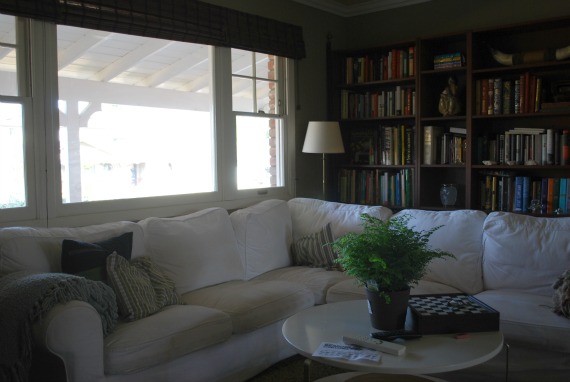 Your family room seems to be slowly turning into my den’s doppleganger…I have the white Ektorp sectional and these exact blinds. I like them. We’ve had them for two years and they’ve done well. Ours weren’t a perfect fit for our window either, but once we got curtains up it was no big deal.